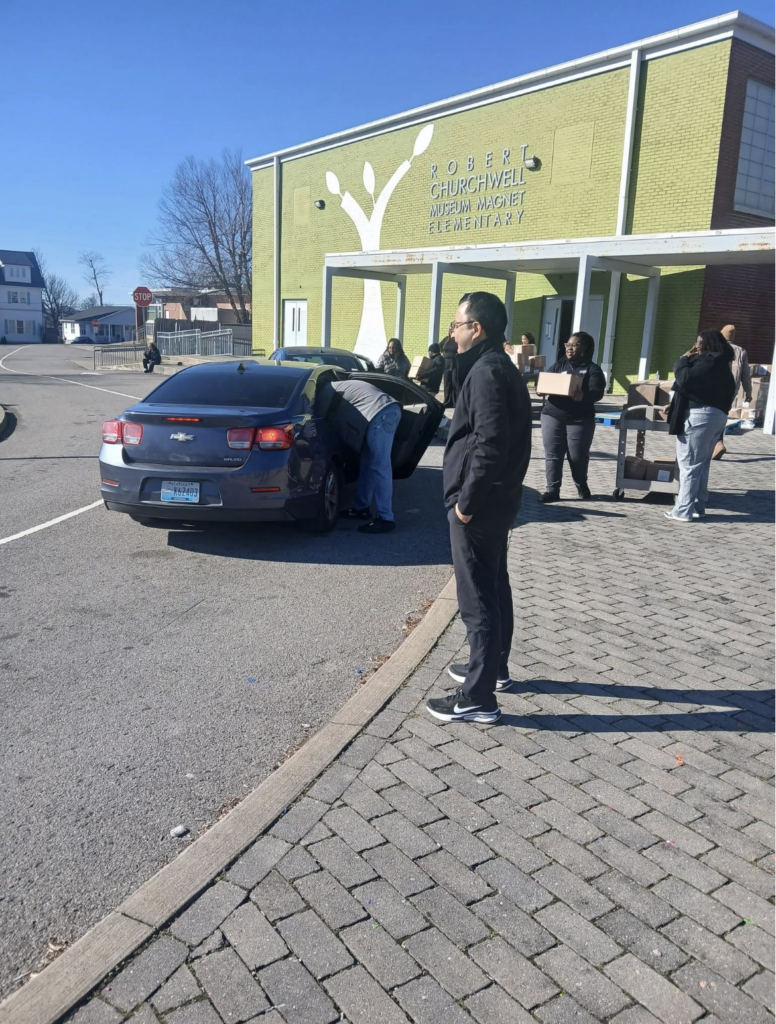 The food boxes were sponsored by Second Harvest Food Bank, and on January 22nd, the distribution took place at two of our U4H partner schools; Robert Churchwell Museum Magnet Elementary and Wright Middle School. Many community partners stopped by to help with the effort, including Moses McKissack Middle School, Belmont University, PENCIL, Mt Bethel and our very own U4H Program Manager, Dr. Cassetta Russell, among many others.